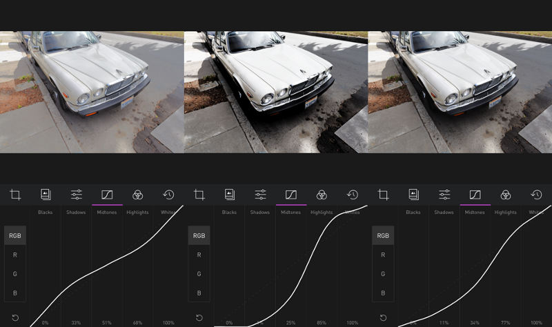 Apart from how much easier to use, refined, and accurate Darkroom’s curve editor is, the RGB curve is where Darkroom’s Curve editor really shines and stands apart from the other curve editors available on iOS.