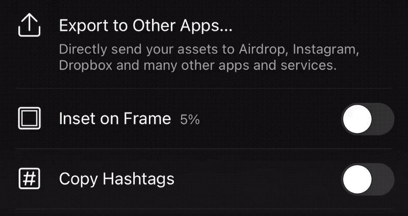 Instagram & Snapchat Stories have a 9:16 aspect ratio, but your photos don’t. If you’re intended destination for your photos is Stories, we introduced a specific tool called Frames to make sharing to Stories even easier. Not only do we have the dedicated Frames tool with smart colors, we also have a quick option in Export for you to inset your photo on a story-sized frame, which even works when exporting multiple photos and videos at once!
