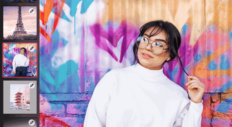 Having to constantly switch between the library and the editing interface as you navigate your library slows you down and takes you out of flow. With the photo strip available on all devices in landscape orientation, you can skip & hop through your library while editing, or quickly compare multiple photos to find the one with the perfect expression or the perfect light.