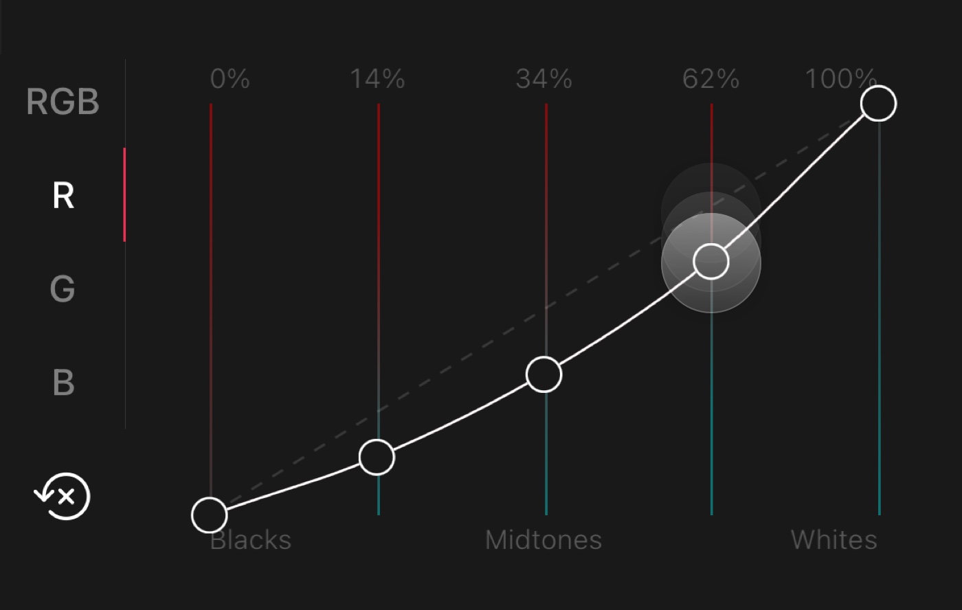 We’ll be the first to admit that the Curves tool can be a daunting tool to enter for the first time. Which is why we have worked hard over the years to make it as easy as we could. One of the details that helps quite a bit are the color gradients we show on the curve tracks to help visualize what will happen. Say you are in the Red channel, and you’d move the highlights slider down, as you can see those highlights will be turning cyan. If those track colors wouldn’t have been there, your guess would have been as good as ours as to what would have happened.