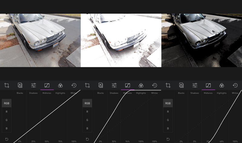 Apart from how much easier to use, refined, and accurate Darkroom’s curve editor is, the RGB curve is where Darkroom’s Curve editor really shines and stands apart from the other curve editors available on iOS.