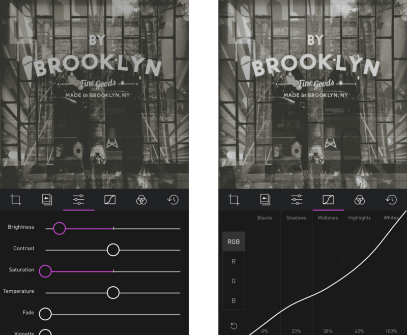 Also new in Darkroom 2 is the new Tone tool (Part of the Pro Kit In-App Purchase). Now, you’re no longer constrained to just Blue/Yellow hues with the temperature slider. you can pick any color on the entire color spectrum, and a different color for the highlights and for the shadows. This is also known as Split Toning (splitting the tone between highlights and shadows). You don’t need to desaturate the image to make use of it, but the two work really well together. A very traditional split tone is using yellows for the highlights, and blue for the shadows.