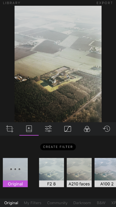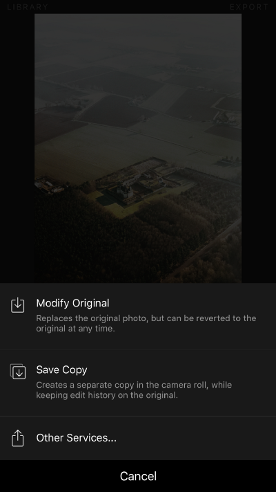 - Addressing one of the longest-running UX issues in the app, the navigation bar in Darkroom is finally persistent when in the editing view! You no longer have to swipe down to share, and you no longer have to swipe down twice to go back to the library. This change is enabled by the redesign of the Export flow in 2.7 which dropped the Save as Square photo.