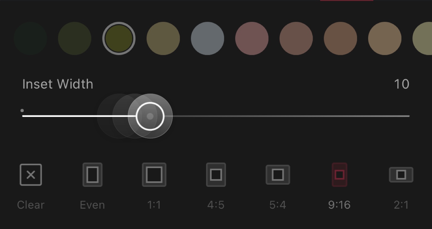 When exporting we allow you to add an inset frame to all your exported photos with just a simple tap. When exporting we actually use the last used frame inset size from the Frames tool. So if you want to change the frame inset for export, head to the frame tool and adjust to your hearts content.