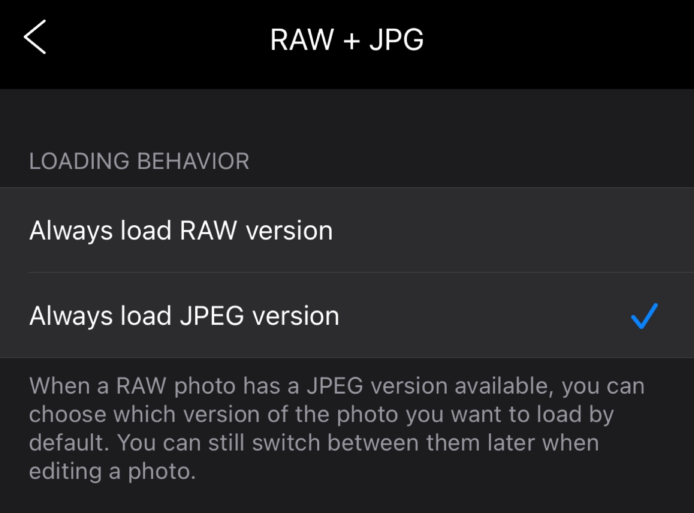 Additionally, you can also change which of the two formats you would like to load by default. We have set it to RAW, but we can imagine you’d want it to be JPG to make things a bit faster. You can easily change whichever you prefer in our Settings → RAW + JPEG Options.